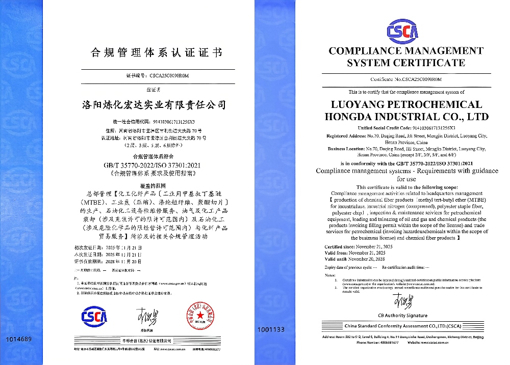 2025年11月21日,我公司獲得合規(guī)管理體系認(rèn)證證書,在規(guī)范化管理進(jìn)程中邁出了新的步伐。